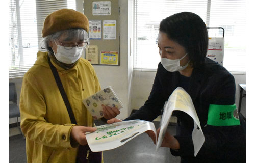 [写真/チラシなどを配布して注意を呼び掛ける署員 ]