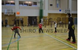 年長園児と国際交流員、バドで交流(2022-10-19)