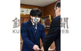 [写真/石垣市長から辞令を受ける宮野氏(左) ]