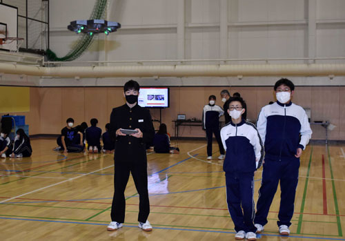 [写真/ドローン操作を体験する生徒たち ]