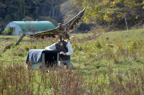 釧路自然環境事務所、オジロワシ2羽放鳥(2022-10-26)