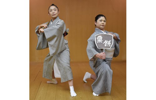 [写真/常磐津「粟餅」 寿芳会・竹内志津、太田智子 粟餅屋が代わる代わる芸をする風俗舞踊 ]