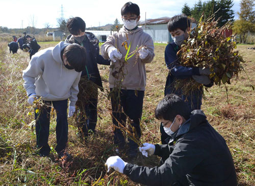 黒大豆の収穫を白糠高生が体験 総合的探究時間の一環(2022-10-29)