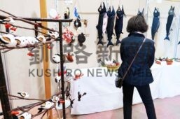 [写真/つるし飾りのコーナーにはシマエナガやサケ、カレイなどさまざまな布で根室の魅力が表現されている ]