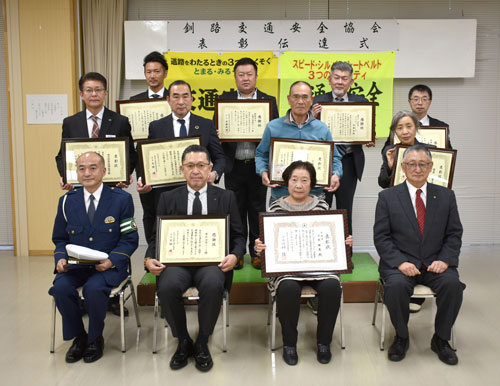 小熊さんに緑十字銅章 6個人7団体に交通栄誉章(2022-11-01)