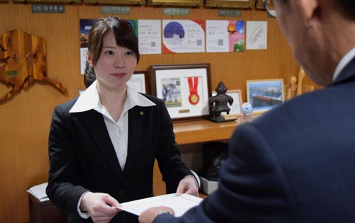 [写真/辞令を受け取る籾山さん ]