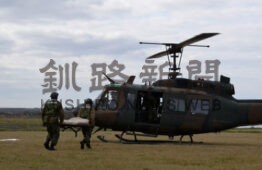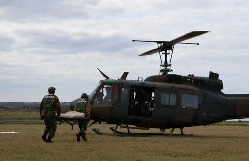 [写真/自衛隊のヘリを使った負傷者輸送訓練 ]