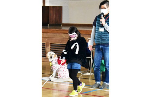 児童ら白杖歩行体験 ボランティア養成講座、盲導犬の仕事も理解(2022-11-08)