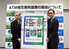[写真/相互無料提携の開始を発表する釧路信組の忠村理事長(左)と道銀の齋藤副頭取 ]