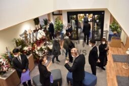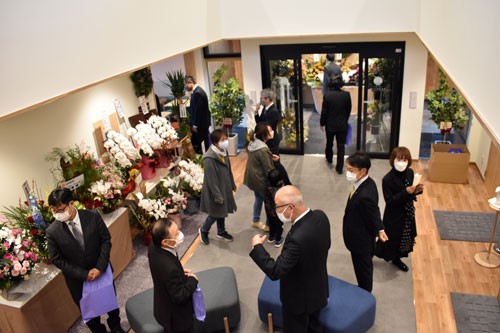 [写真/お祝いの花が並ぶ、つるいむら湿原温泉ホテルの内覧会 ]
