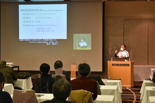 [写真/来年のATWSの日程を説明する菊地氏 ]