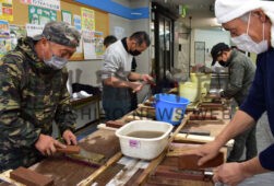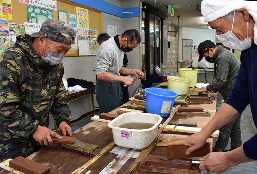 [写真/コロナ禍でも人気の根室技能士会による無料包丁研ぎサービス ]