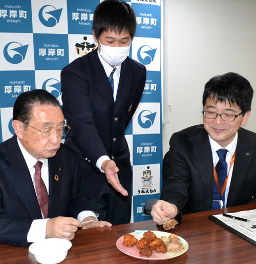 全国水産研究発表、健闘誓う  厚岸翔洋高生が役場表敬(2022-12-01)