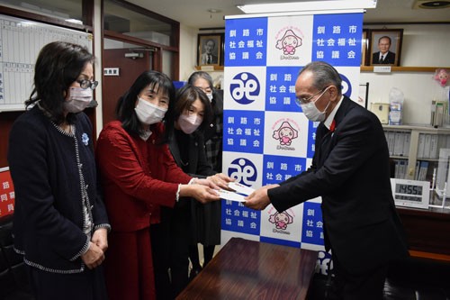 歳末たすけあいで社協と赤い羽根に寄付 釧路更生保護女性会(2022-12-15)