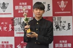 菅野、林さん(釧湖陵高)山賞受賞 森里海研究ポスター発表会(2023-04-01)