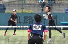 男女44組、頂点目指し激戦 ソフトテニス中学春季大会(2023-05-08)