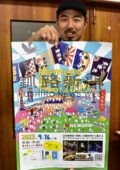 [写真/ダンスイベントのポスターでPRする奈良さん]