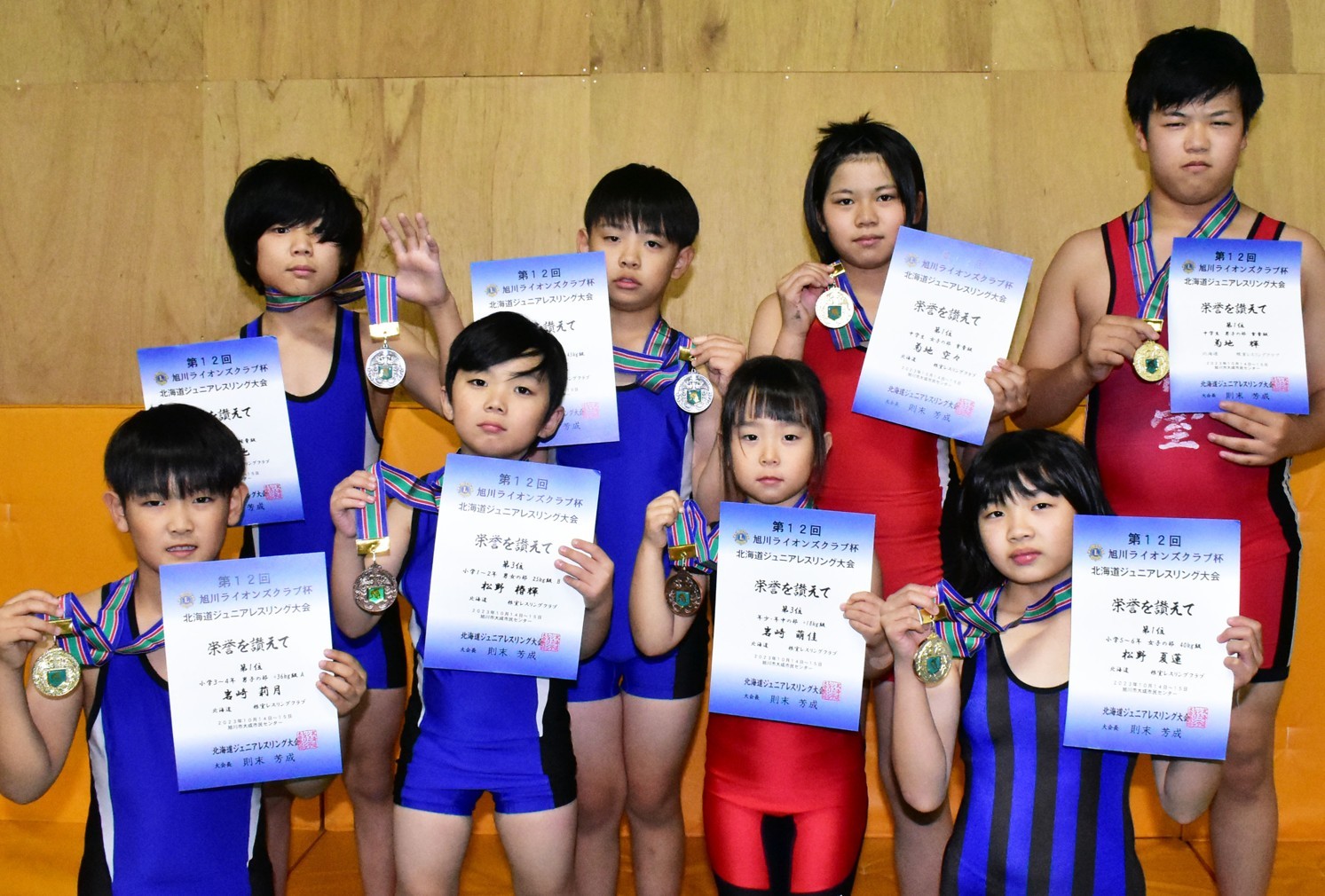 [写真/優勝者4人を含む8人全員が表彰台に立ったネムロレスリングクラブ]