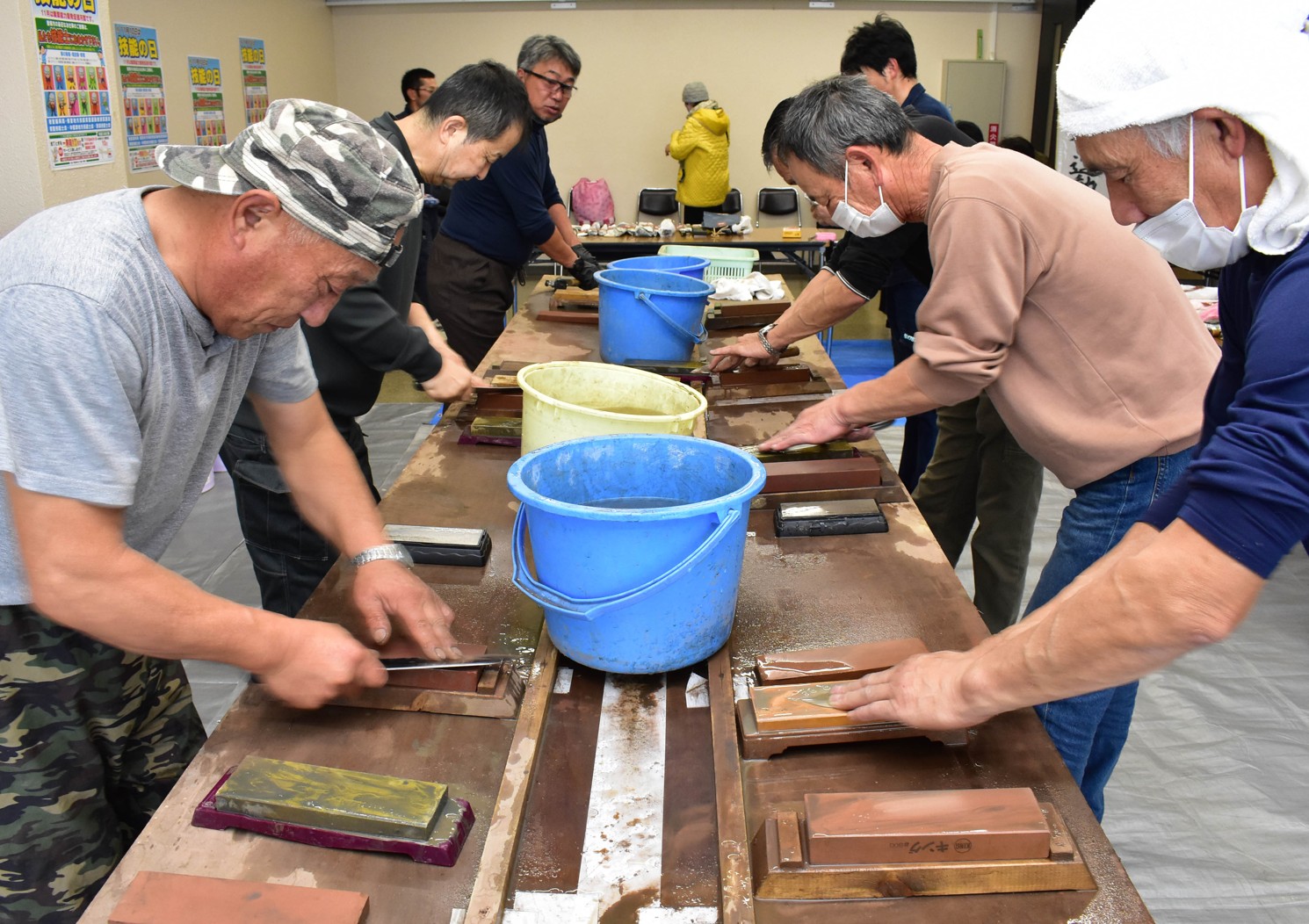 [写真/会場を変更しての根室技能士会無料包丁研ぎサービス]
