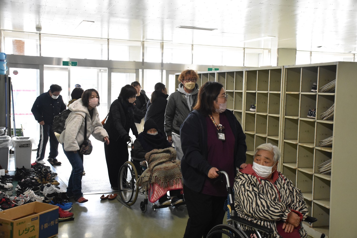 [写真/続々と学校に避難する参加者]