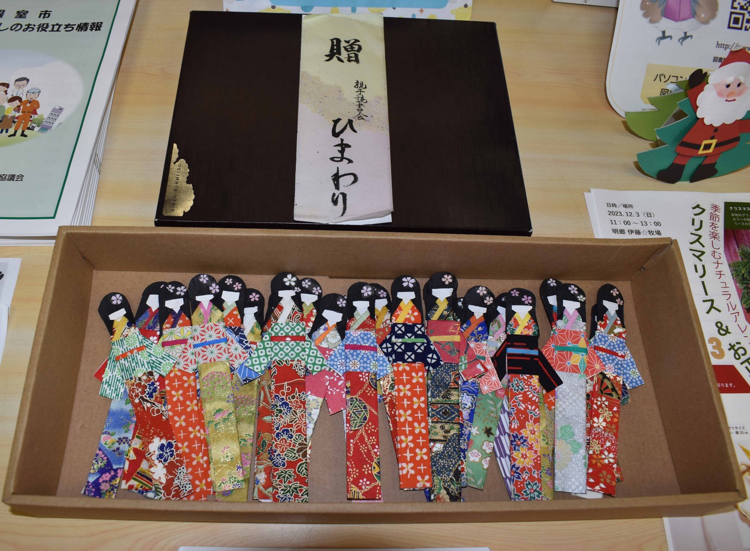 千代紙人形しおり図書館に寄贈 読書会「ひまわり」今年も【根室】(2023-12-01)
