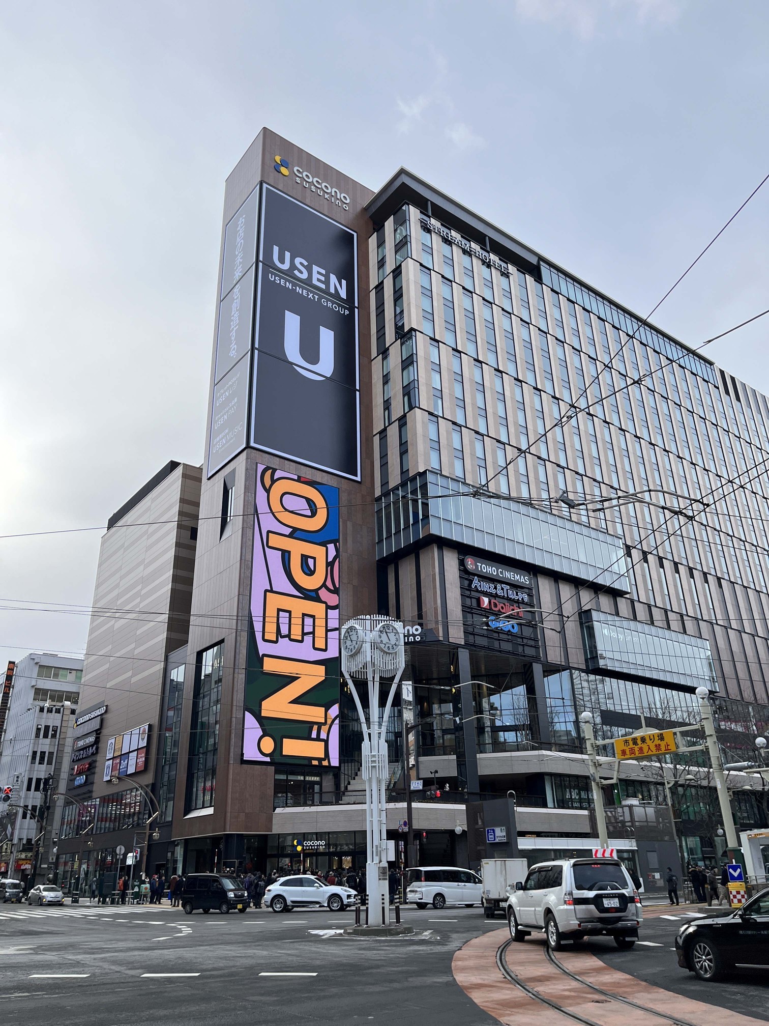 [写真/1次オープンしたココノススキノ。屋外のデジタルサイネージ広告も道内最大]