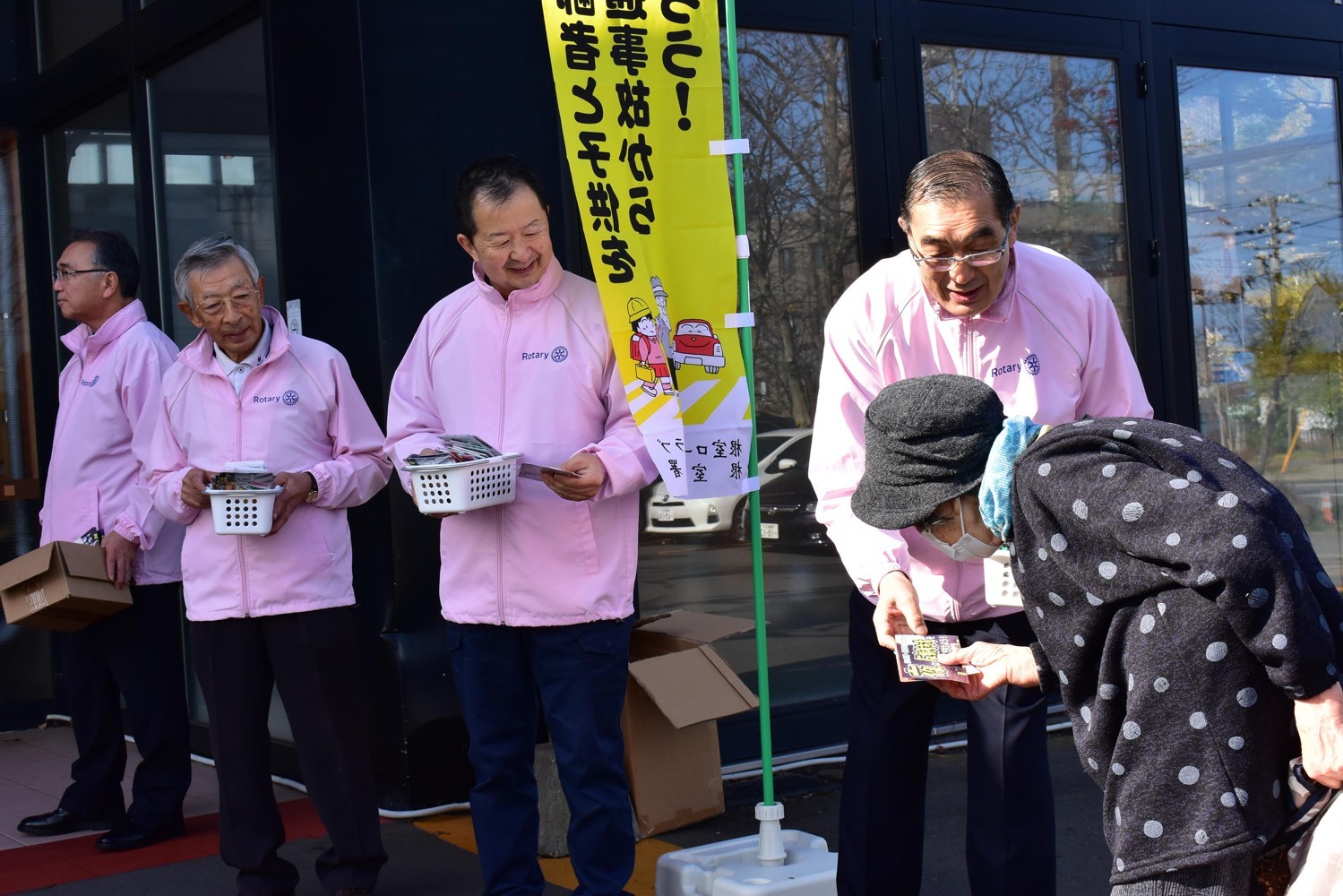 買い物客に反射板配布 根室ロータリーク、交通事故防止で啓発【根室】(2023-12-02)