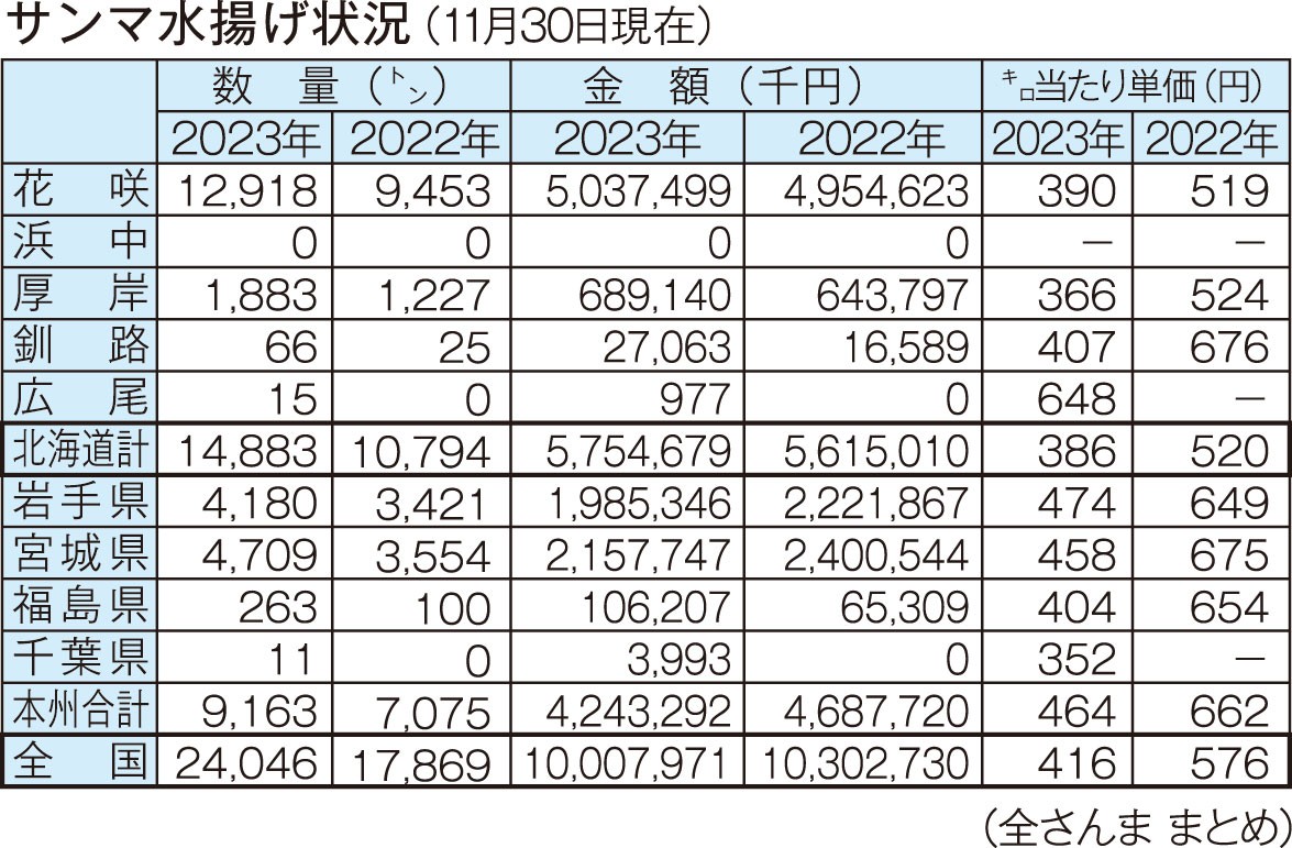 花咲サンマ漁1万㌧超 全さんま11月末【根室】(2023-12-08)