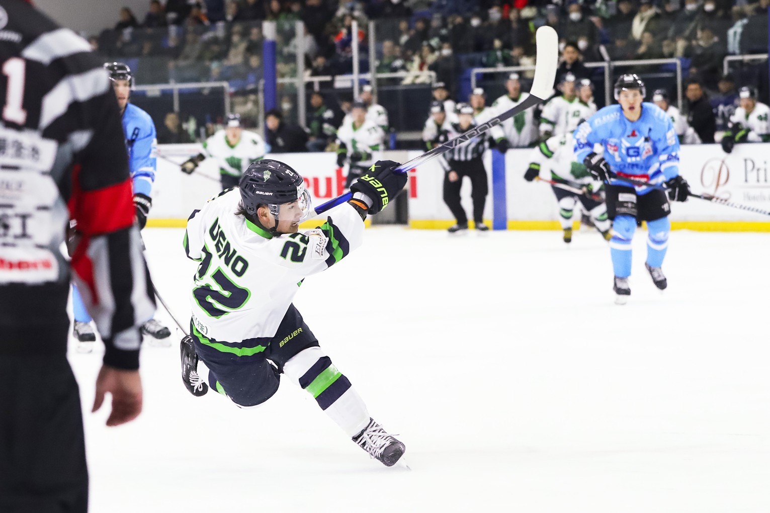[写真/【準々決勝、北海道ワイルズ─横浜グリッツ】第2ピリオド7分、決勝点となる3点目のゴールを決めた北海道ワイルズのFW上野(中島達哉撮影)]
