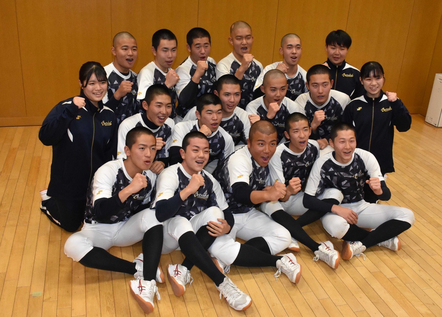 [写真/21世紀枠候補校に選ばれ喜び合う別海高の選手たち]