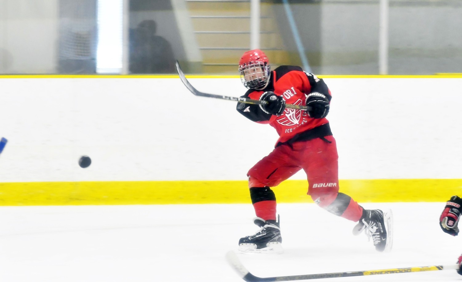 [写真/【準々決勝、東胆振D─釧鳥取】第1ピリオド14分、反撃のゴールを決める釧鳥取のFW尾崎謙]