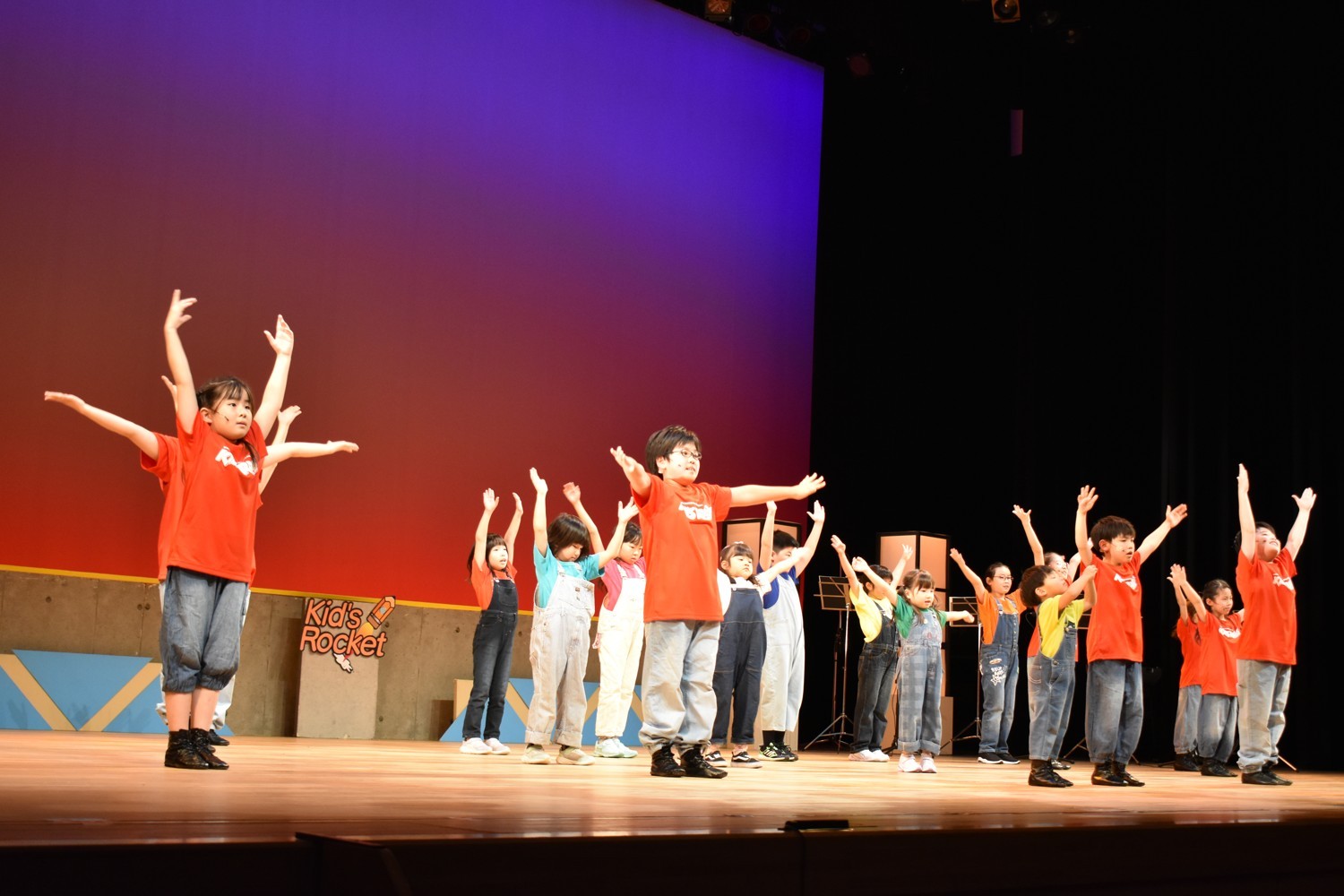 [写真/舞台いっぱいに元気に歌い踊る子供たち]