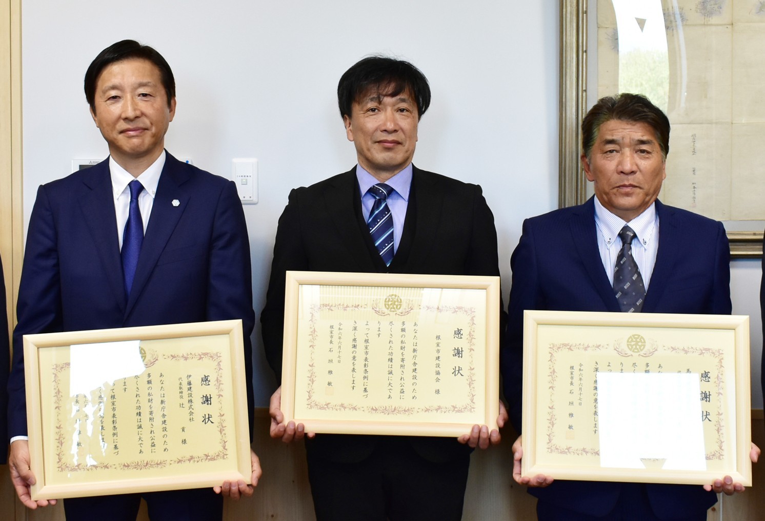 新庁舎充実に市建設協100万円、会員2社が各50万円寄付【根室】(2024-07-02)