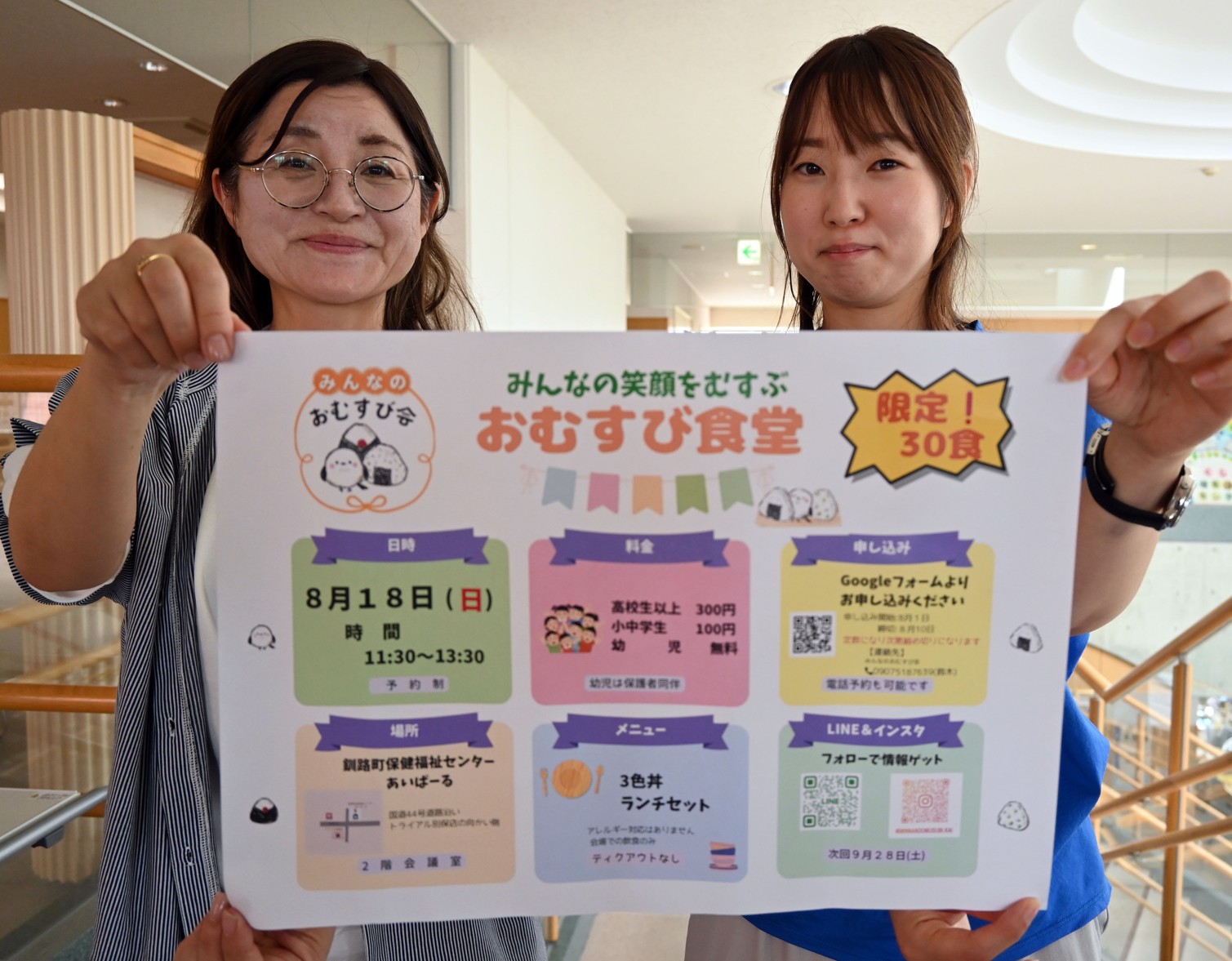 [写真/18日にあいぱーるで初開催するおむすび食堂をPRするメンバー]
