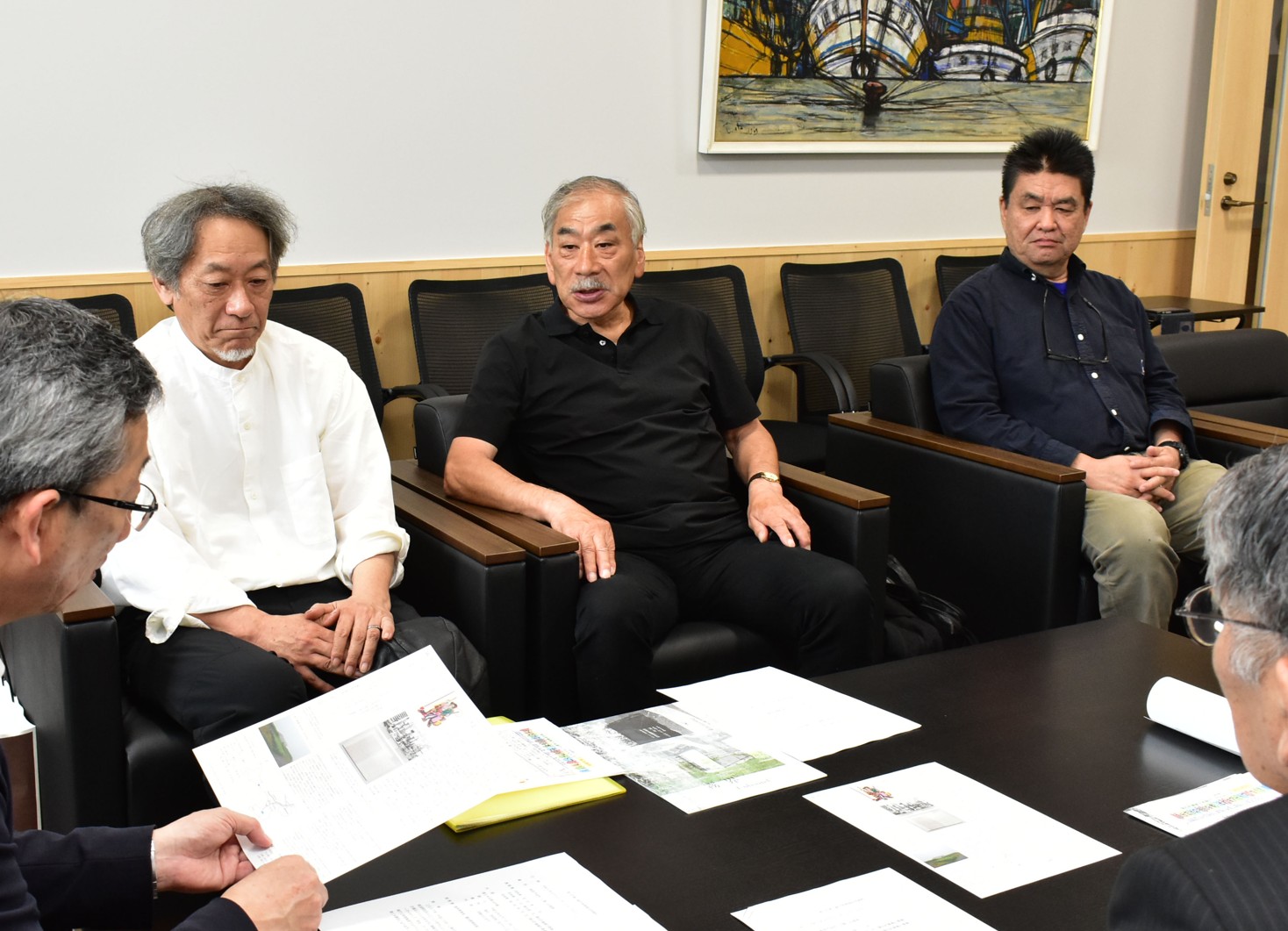 [写真/落石計画を市側に説明する(左奥から)井出氏、池田氏、高浜氏]