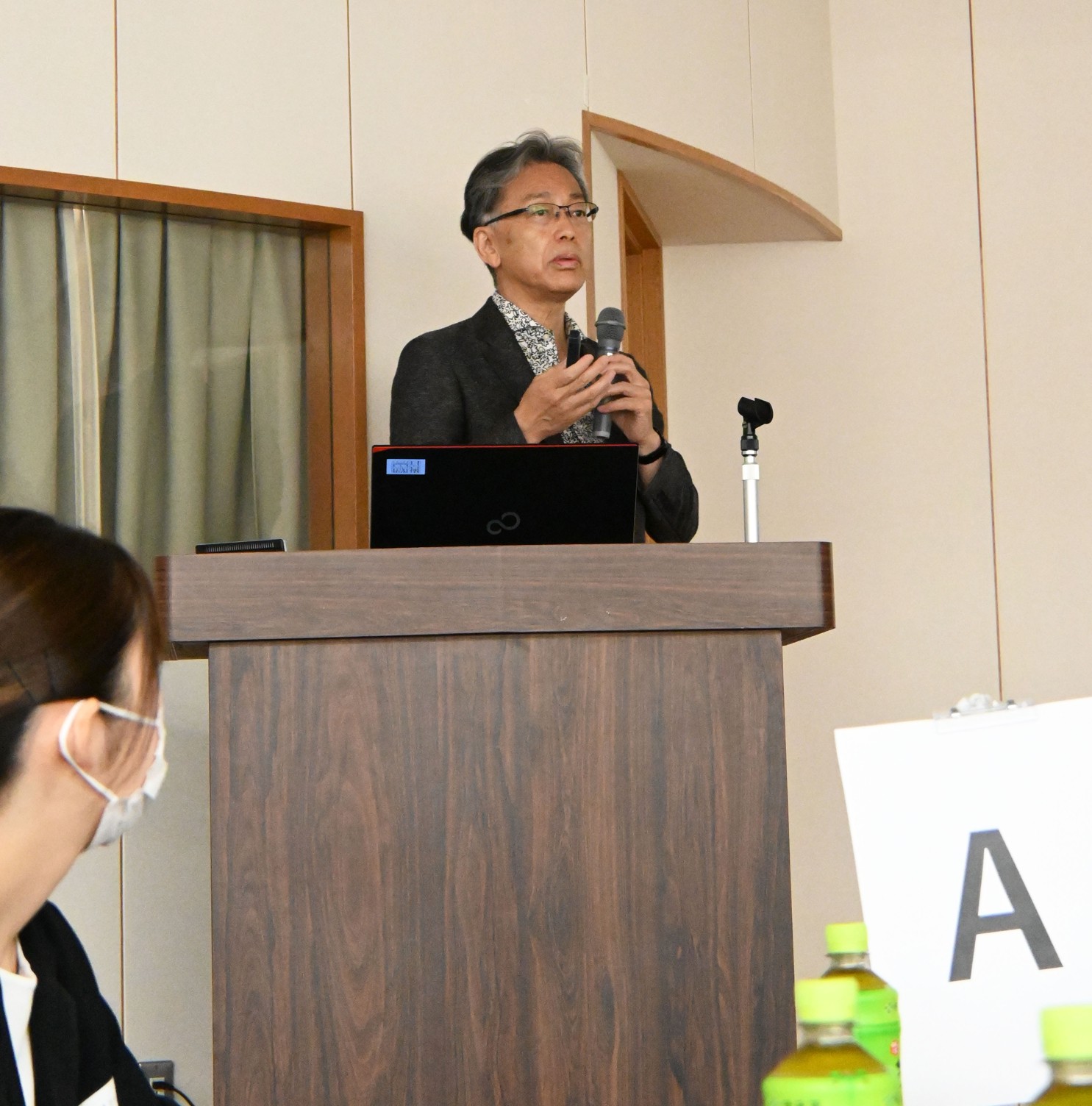 [写真/HIVについて講話する宮城島副院長]