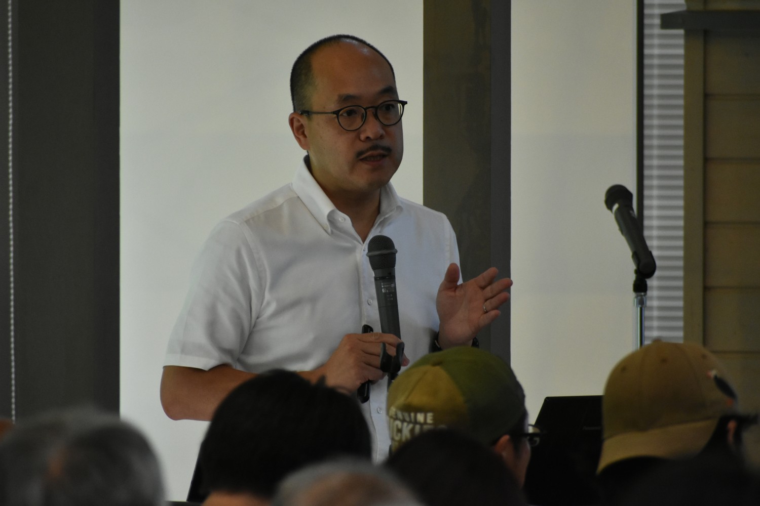 [写真/クマとの共存について語る佐藤氏]
