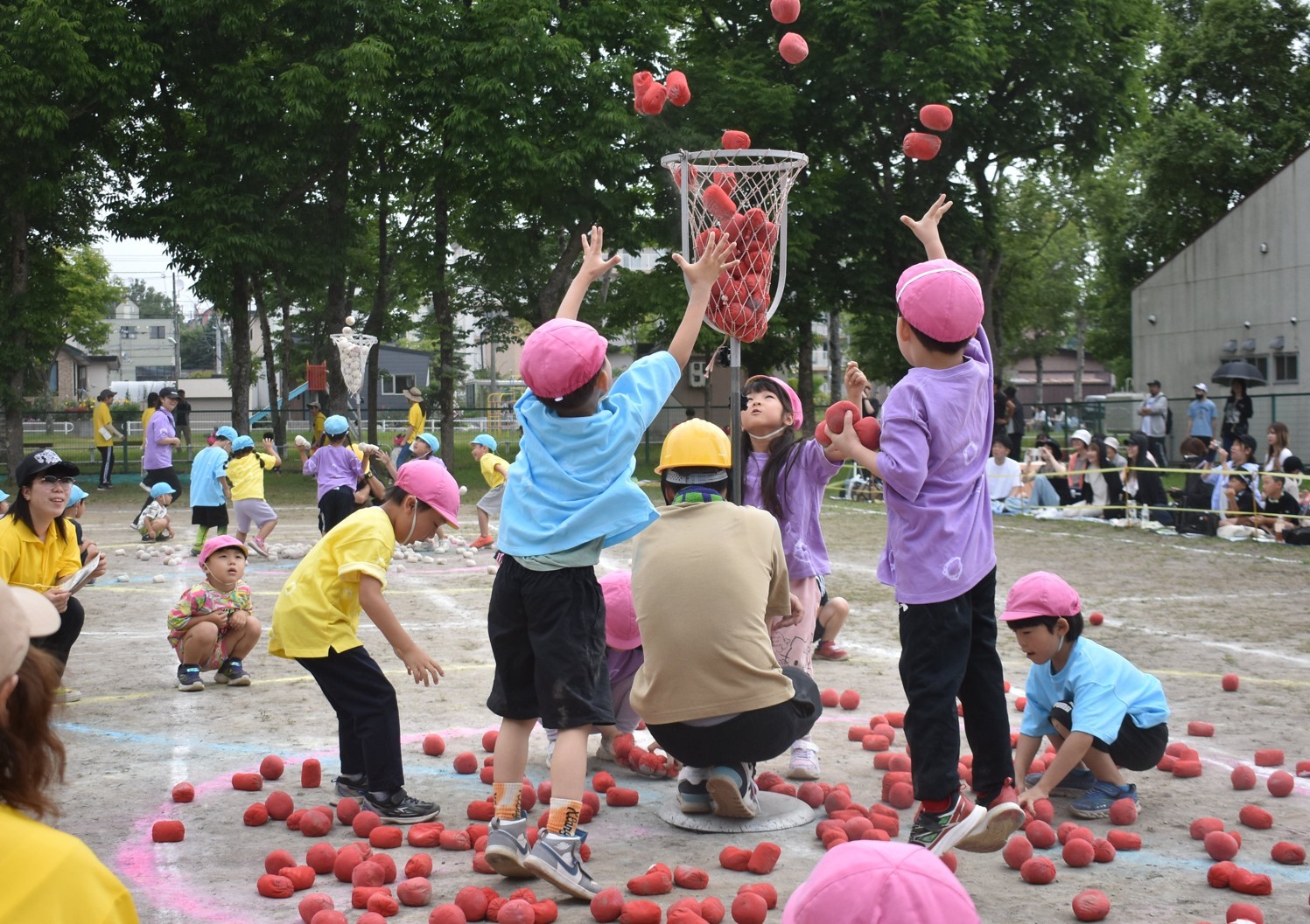 [写真/クラス対抗で行った玉入れ]