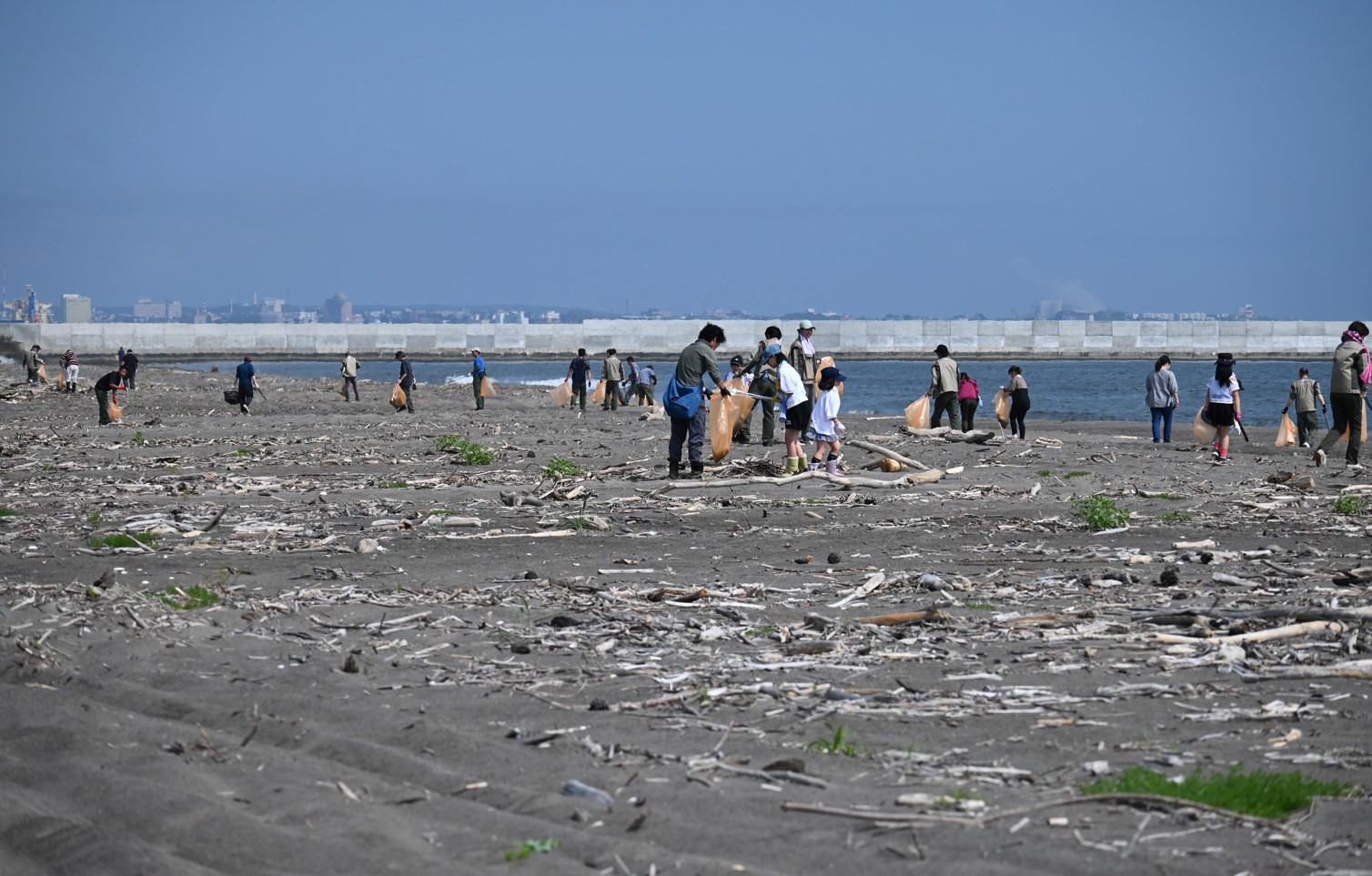 [写真/家族も参加し行われた海岸でのごみ拾い]