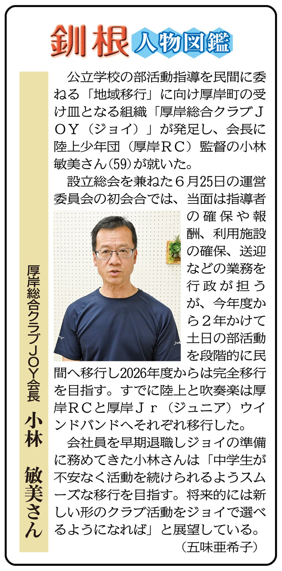 - 厚岸総合クラブJOY会長 小林敏美さん(2024-08-12)
