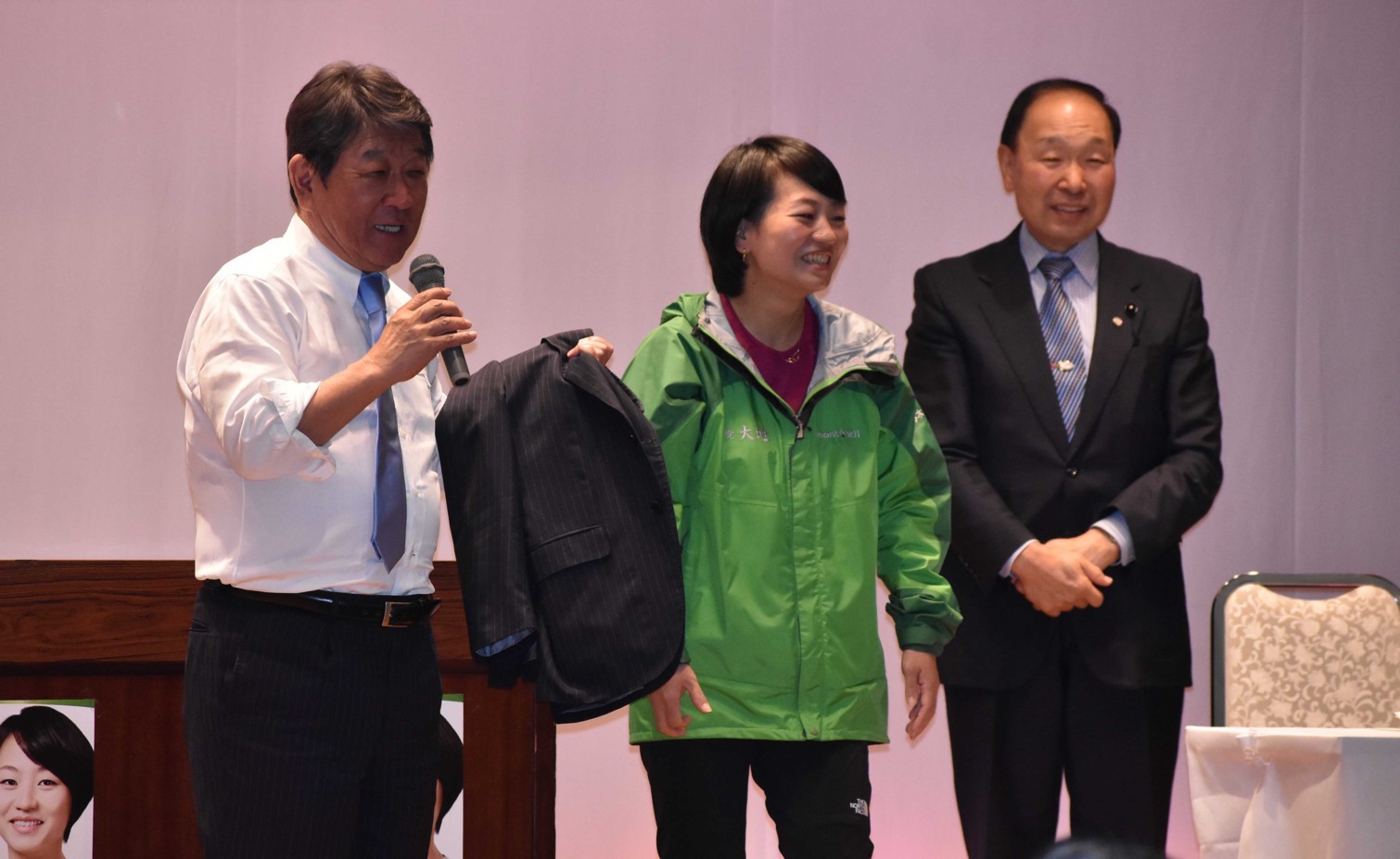 [写真/鈴木氏を応援する茂木自民党前幹事長(左)]