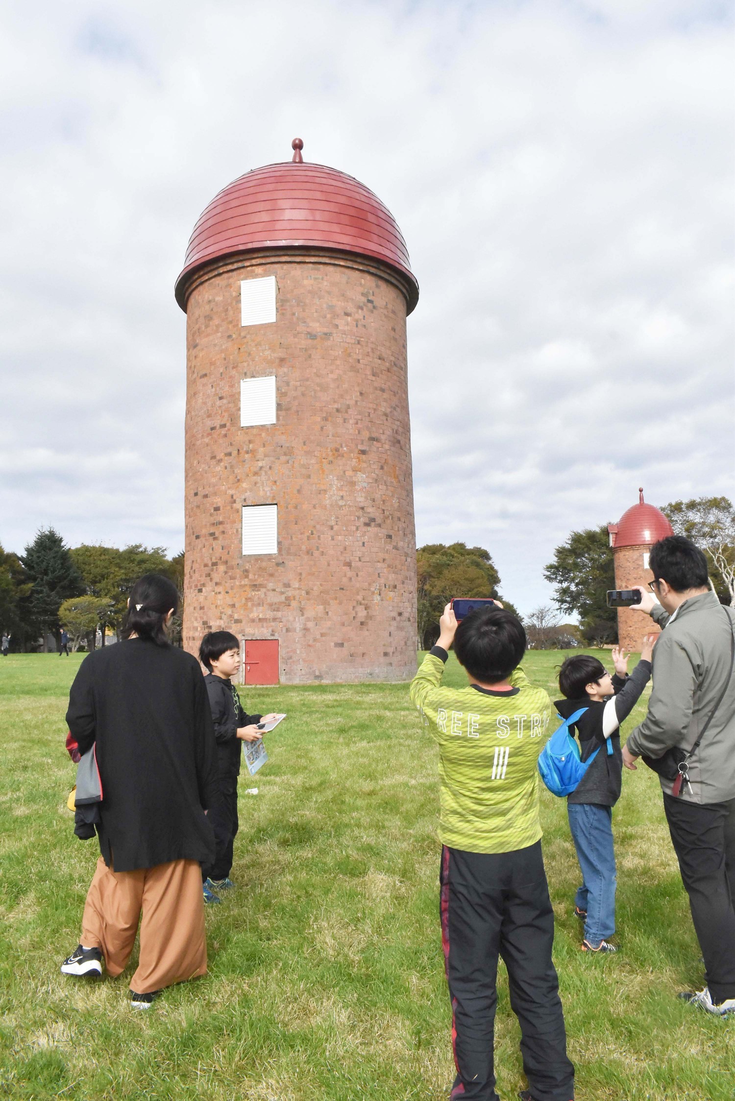 [写真/明治公園で国内最大級のれんが造りサイロを写真に収める参加者]