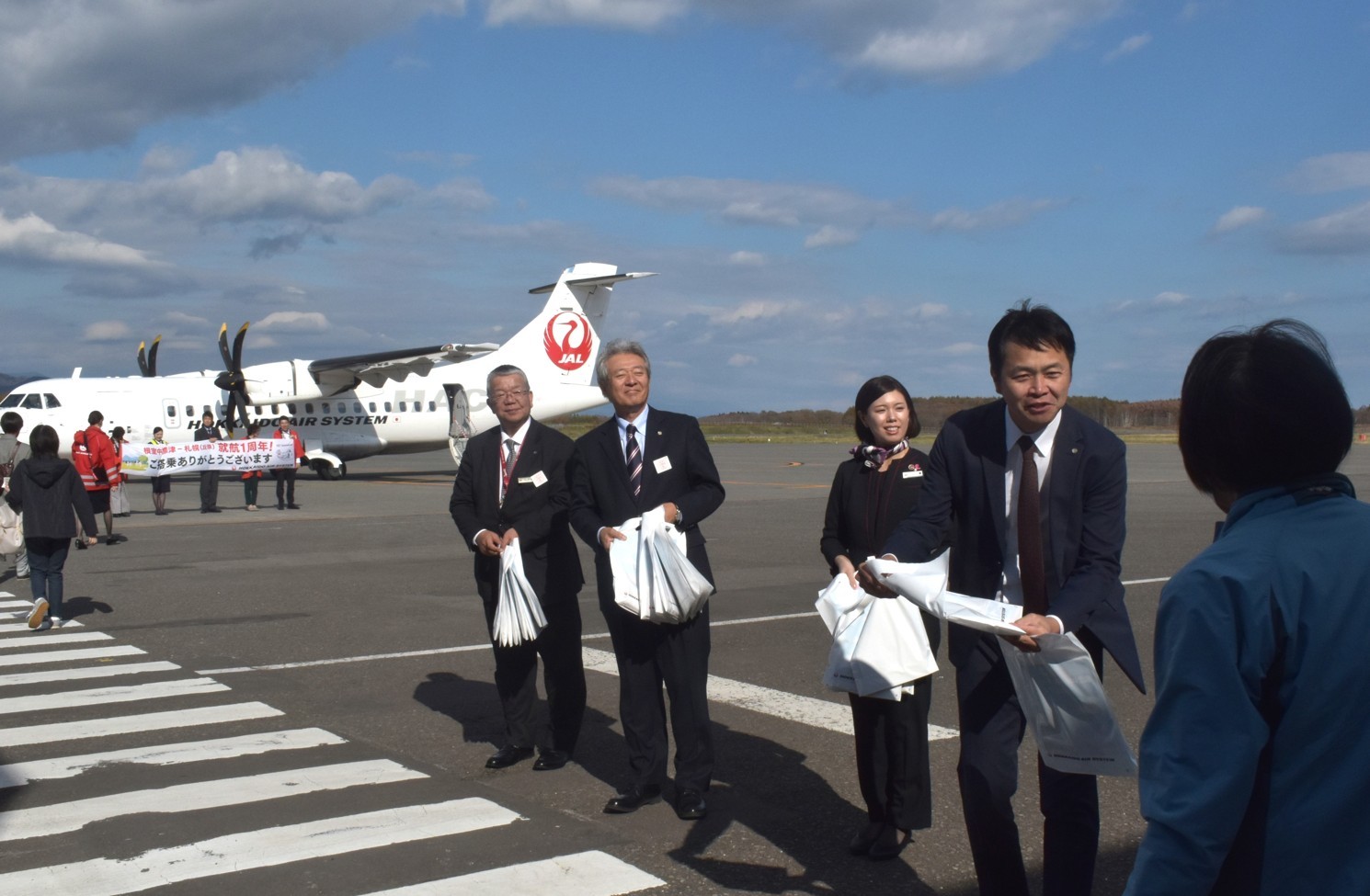 搭乗客に社長ら記念品 丘珠線就航1周年【中標津】(2024-10-30)