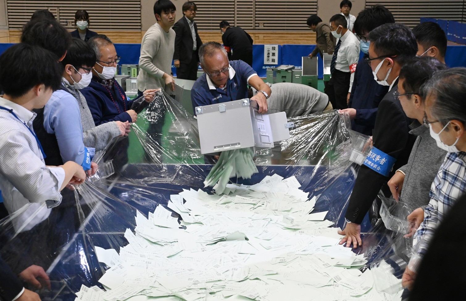 [写真/衆院選と釧路市長選が同時開票となった釧路市の開票所(ウインドヒルくしろスーパーアリーナ)]