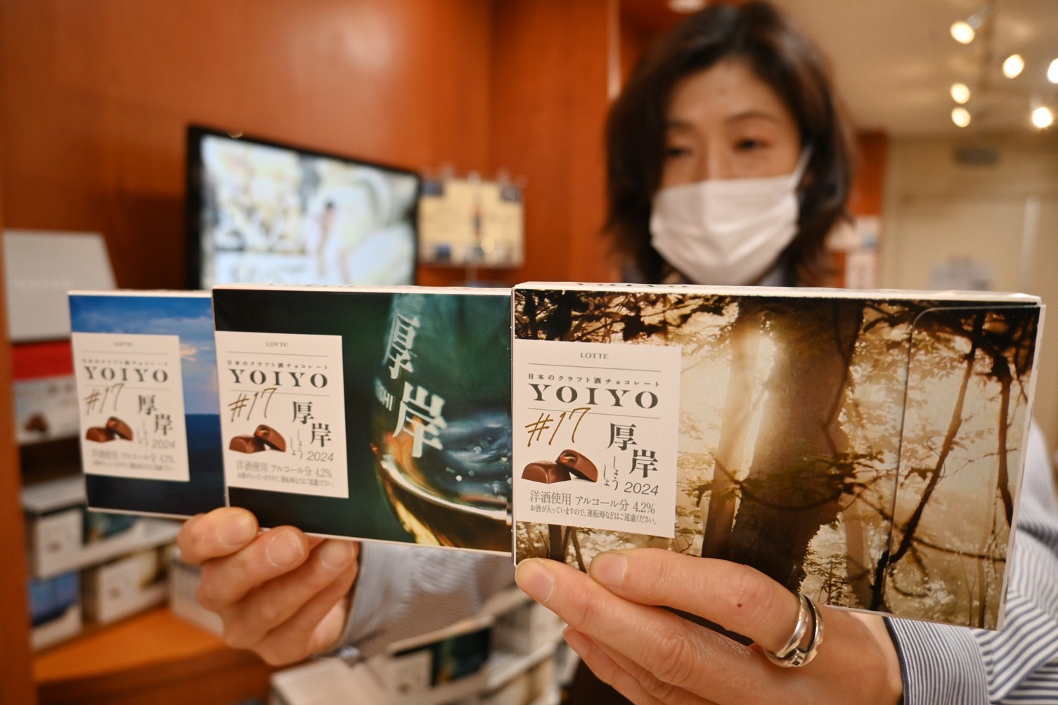[写真/コンキリエで販売している厚岸のシングルモルトウイスキー「小暑」を使ったチョコレートYOIYOの新製品]