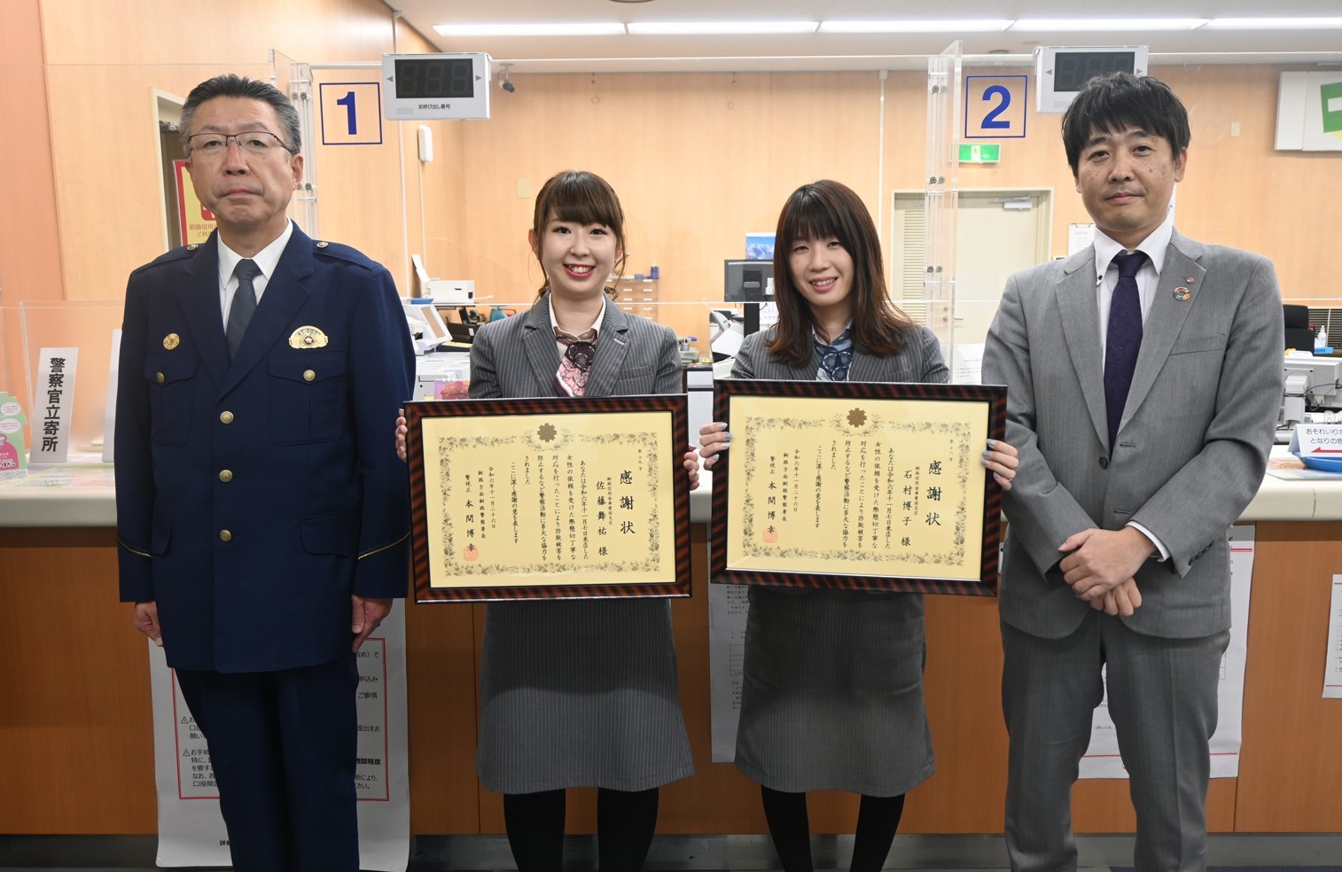 特殊詐欺未然に防ぐ 佐藤、石村さんに釧路署が感謝状【釧路市】(2024-11-30)