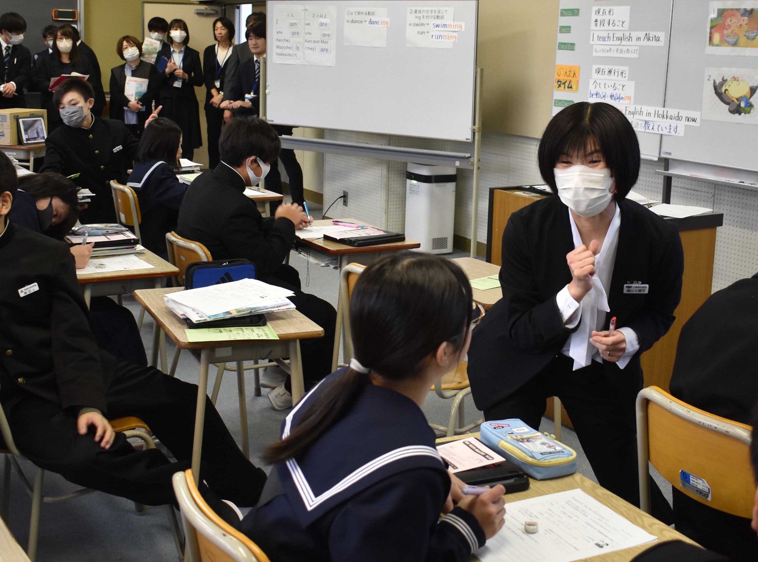 [写真/生徒に声を掛けて指導する畠山教諭(右端)]