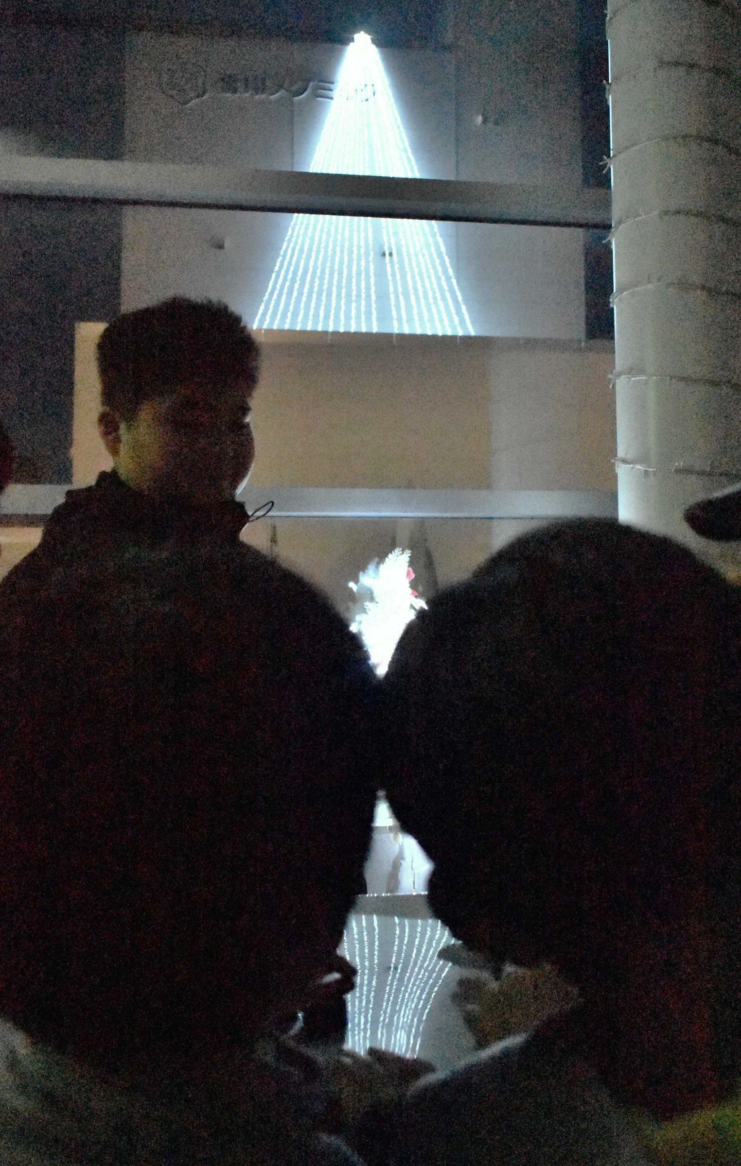 [写真/イルミネーションとスイッチを押す子供たち]