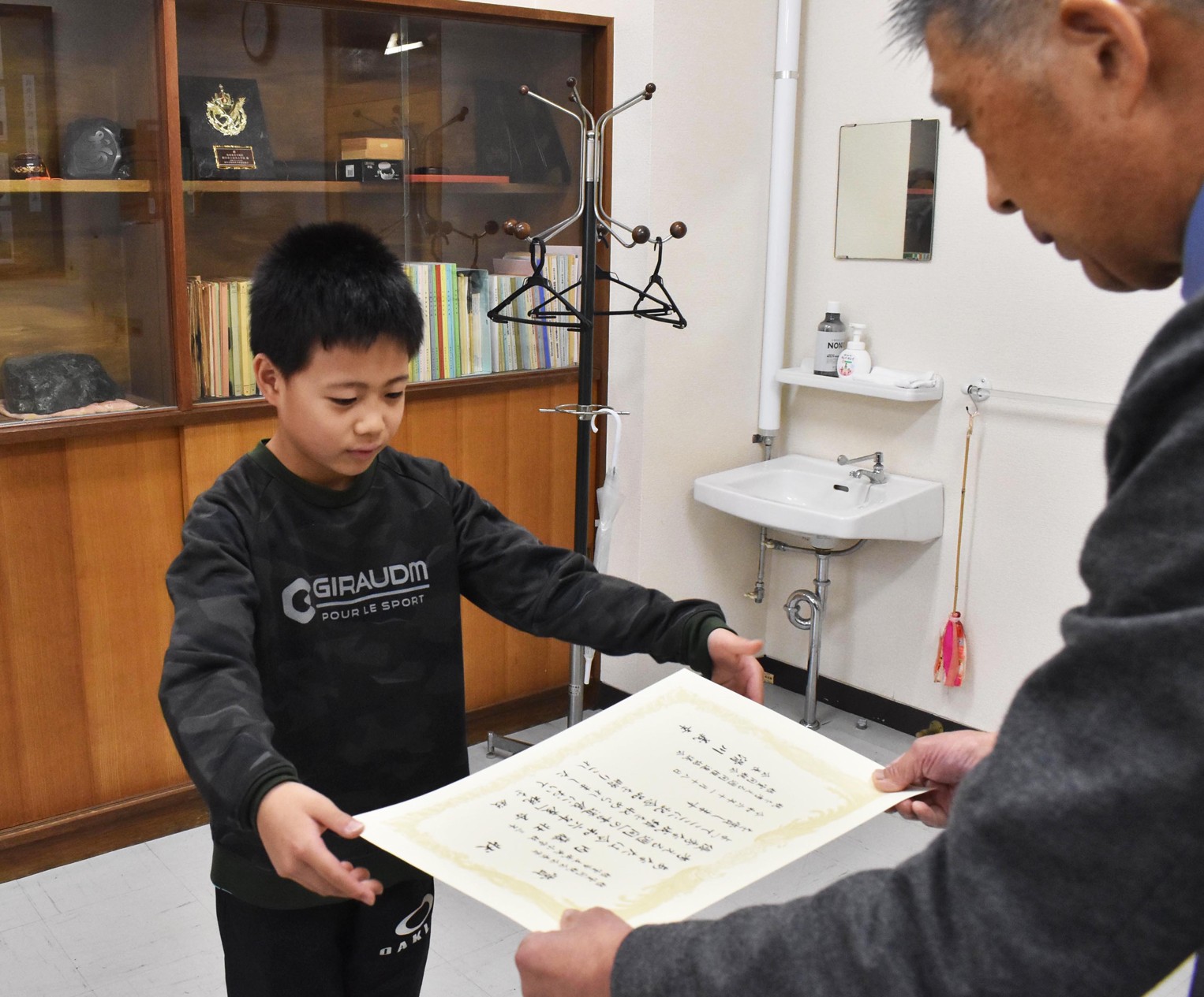 内藤君に間税会会長賞 「税に関する書道」成央小で表彰式【根室】(2024-12-05)