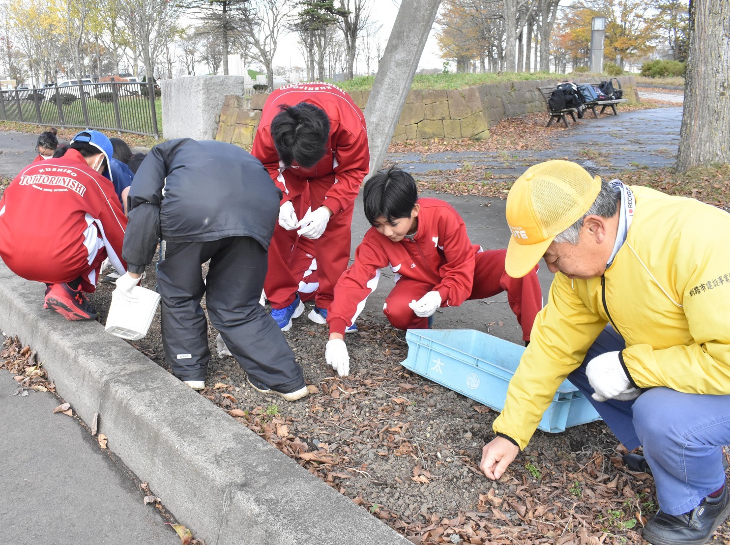美しい花壇目指し鳥取西中生と整備 鳥取8丁目町内会【釧路市】(2024-12-07)
